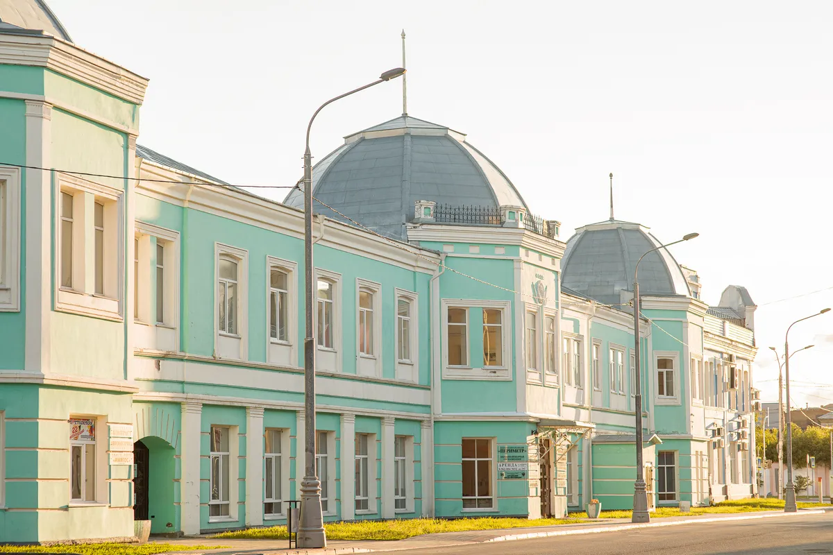 Универмаг считался одним из крупнейших магазинов в торговой сети известного купеческого семейства Морозовых. На втором этаже находилось отделение Русско-Азиатского банка, на первом этаже торговали всевозможными товарами, от тканей до посуды. В огне майского пожара 1917 года универмаг Андрея Морозова пострадал. В 1925-1928 годах на объекте была проведена реконструкция, в этот же период были установлены купола со шпилем.